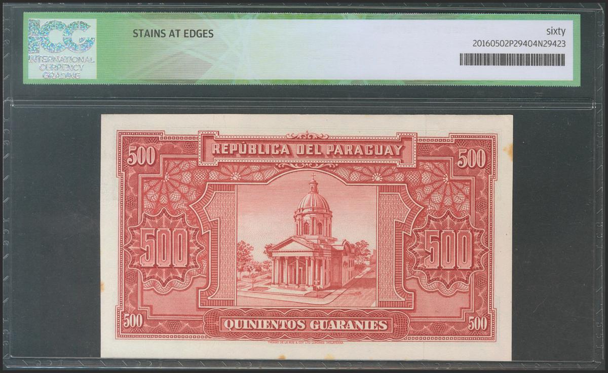 PARAGUAY. 500 Guaranies. 1952. Serie A. (Pick: 190b). ICG60*(Stains at edges).