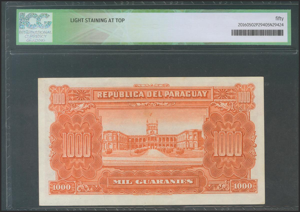 PARAGUAY. 1000 Guaranies. 1952. Serie A. (Pick: 191b). ICG50*(light staining at top).