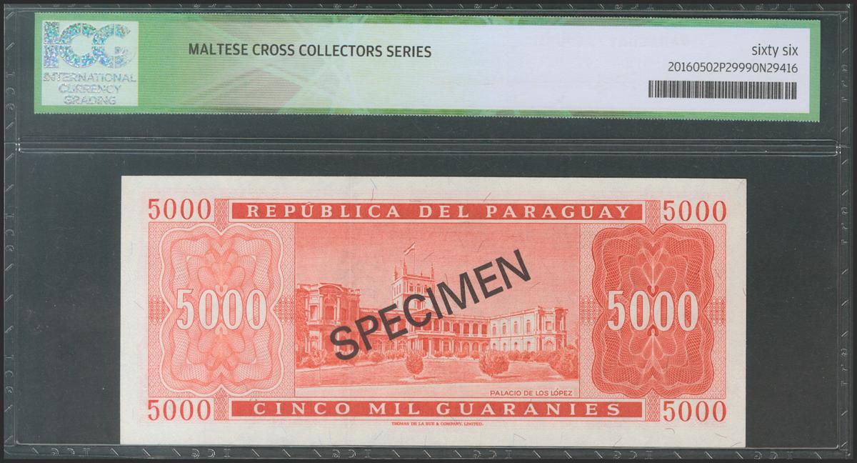 PARAGUAY. 5000 Guaranies. 1952. Specimen. (Pick: 208s). ICG66.