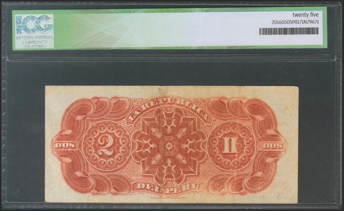 PERU. 2 Soles. 30 June 1879. Serie A. (Pick: 2). ICG25.