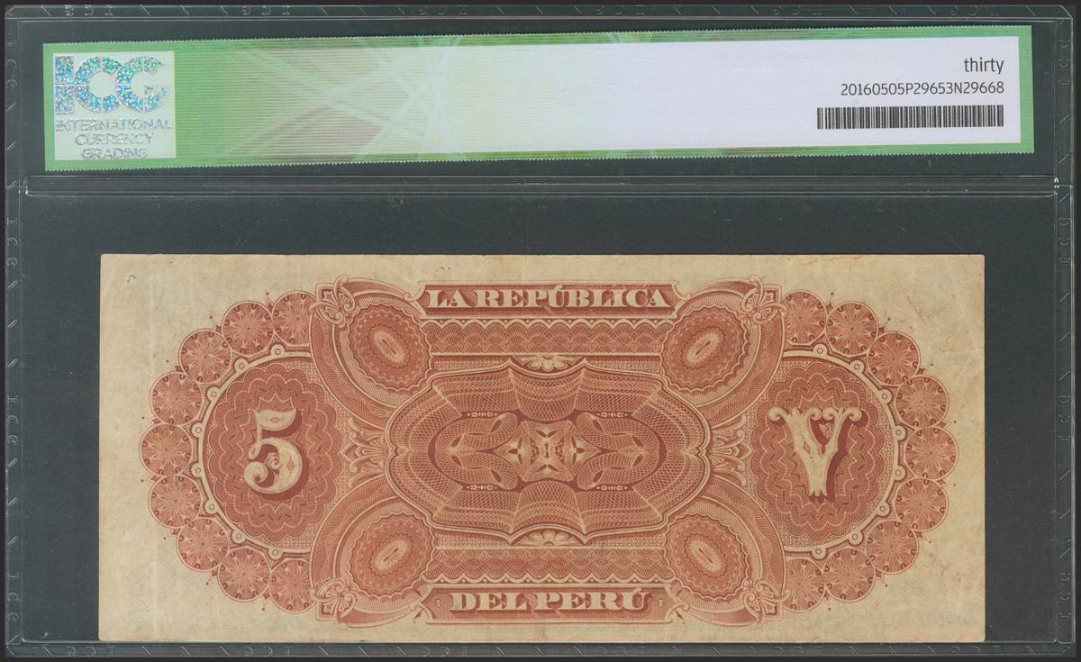 PERU. 5 Soles. 30 June 1879. Serie A. (Pick: 4). ICG30.