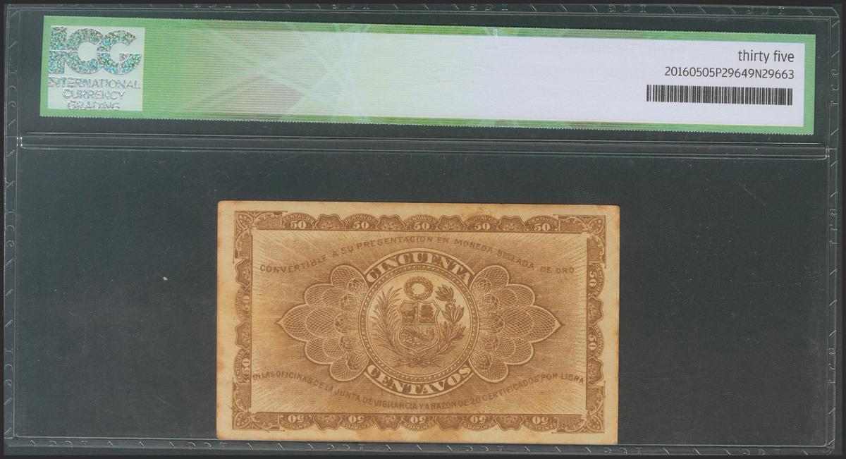 PERU. 50 Centavos. 17 August 1917. Serie F. (Pick: 30). ICG35.