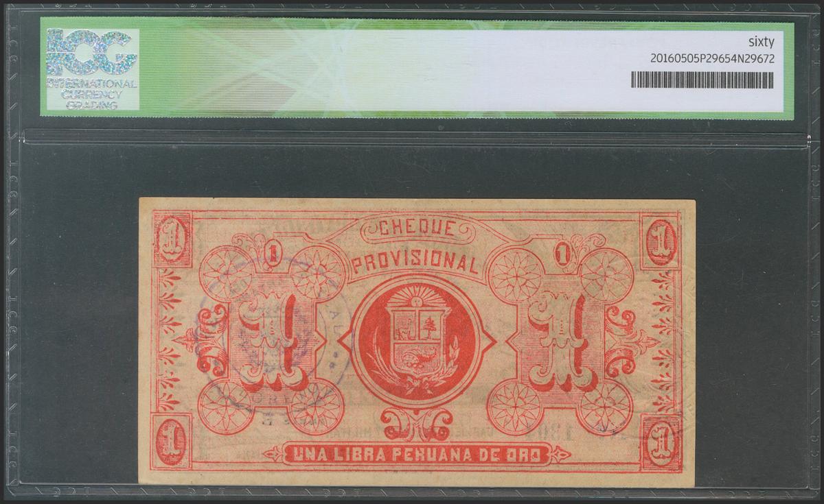 PERU REVOLUTION. 1 Libra. 1 October 1921. Serie B. (Pick: s606b). ICG60.