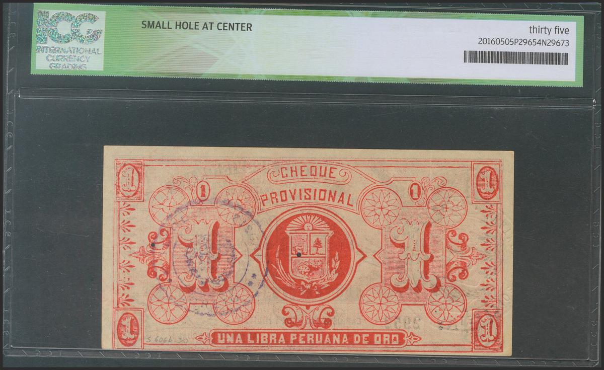 PERU REVOLUTION. 1 Libra. 1 October 1921. Serie B. (Pick: s606b). ICG35*(Small hole at center).