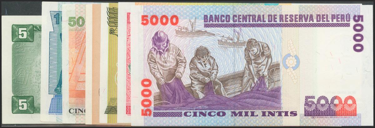 PERU. Set of 7 banknotes, different values and years. Uncirculated.