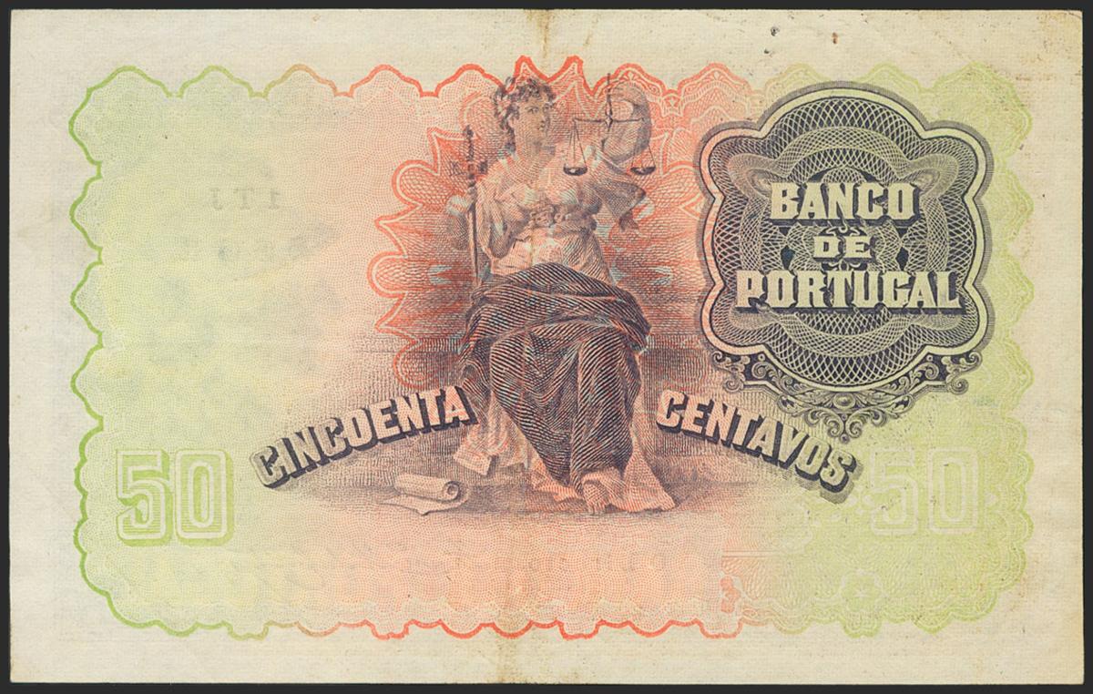 PORTUGAL. 50 Centavos. 1918. (Pick: 112a). Rests of adhesive in the back, and pressed. Better than Very Fine.