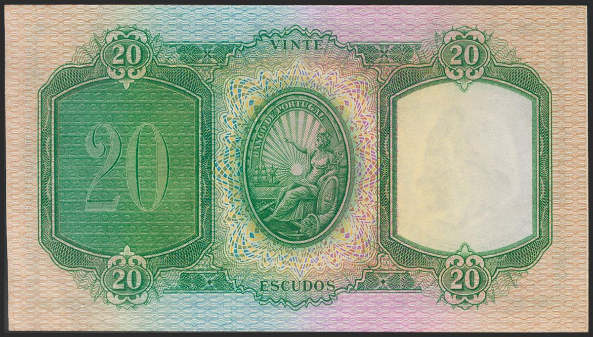 PORTUGAL. 20 Escudos. 1951. (Pick: 153a). Paper waves. About Uncirculated.