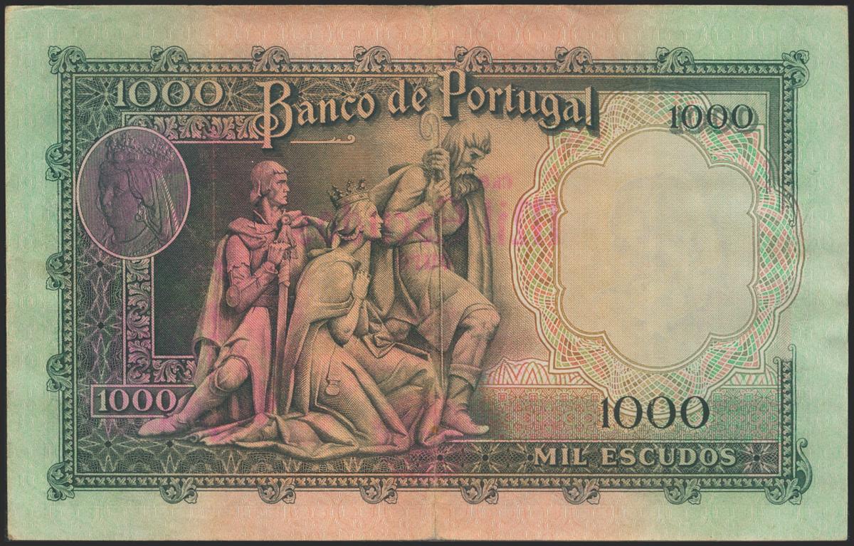 PORTUGAL. 1000 Escudos. 1956. Banco de Portugal. Chapa 8. (Pick: 161). Rare, likely pressed and crispy. Better than Very Fine.
