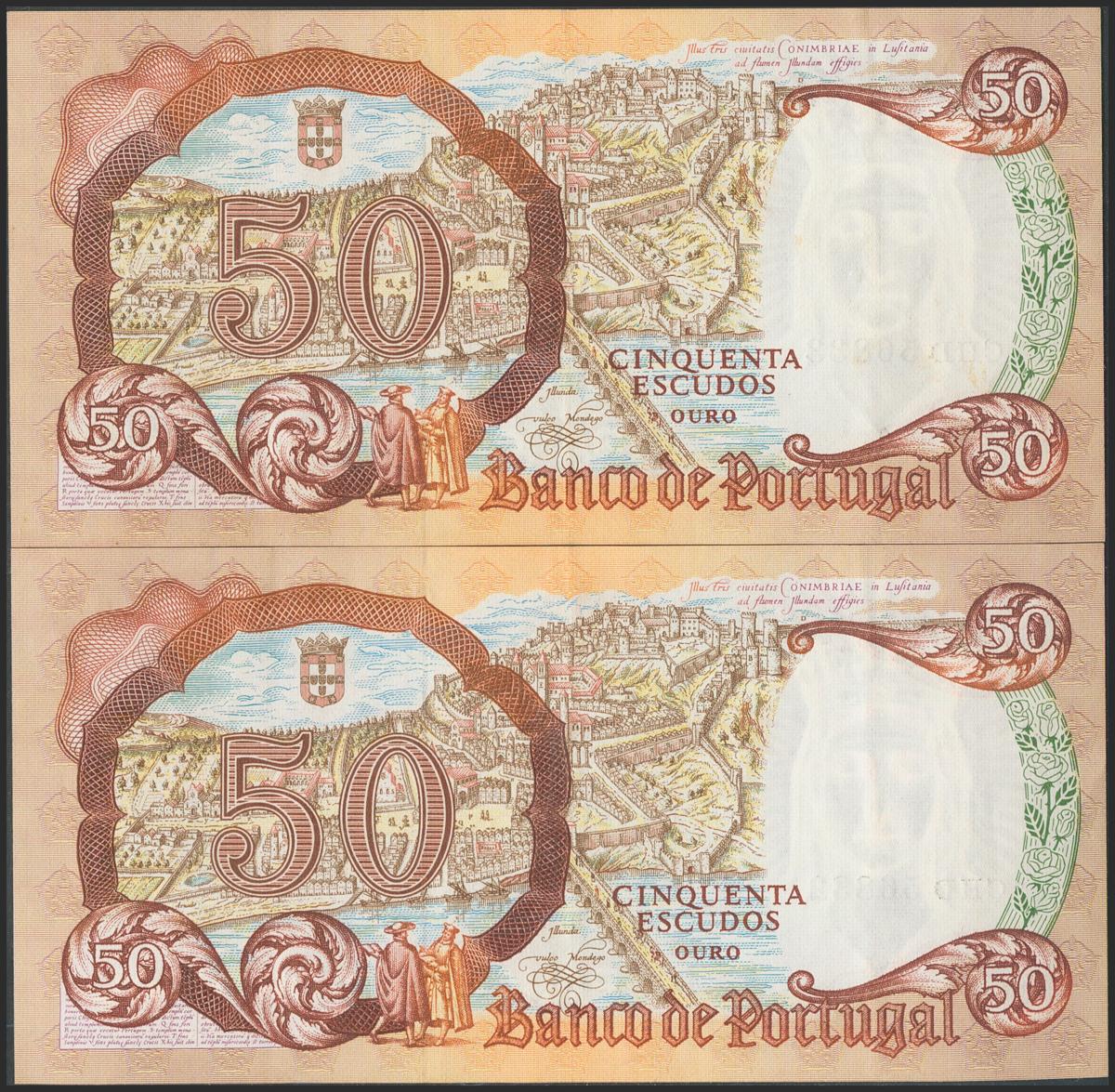 PORTUGAL. Set of 2 banknotes of 50 Escudos from 1964. Banco de Portugal. Chapa 8. Correlative pair. (Pick: 168). Extremely Fine.