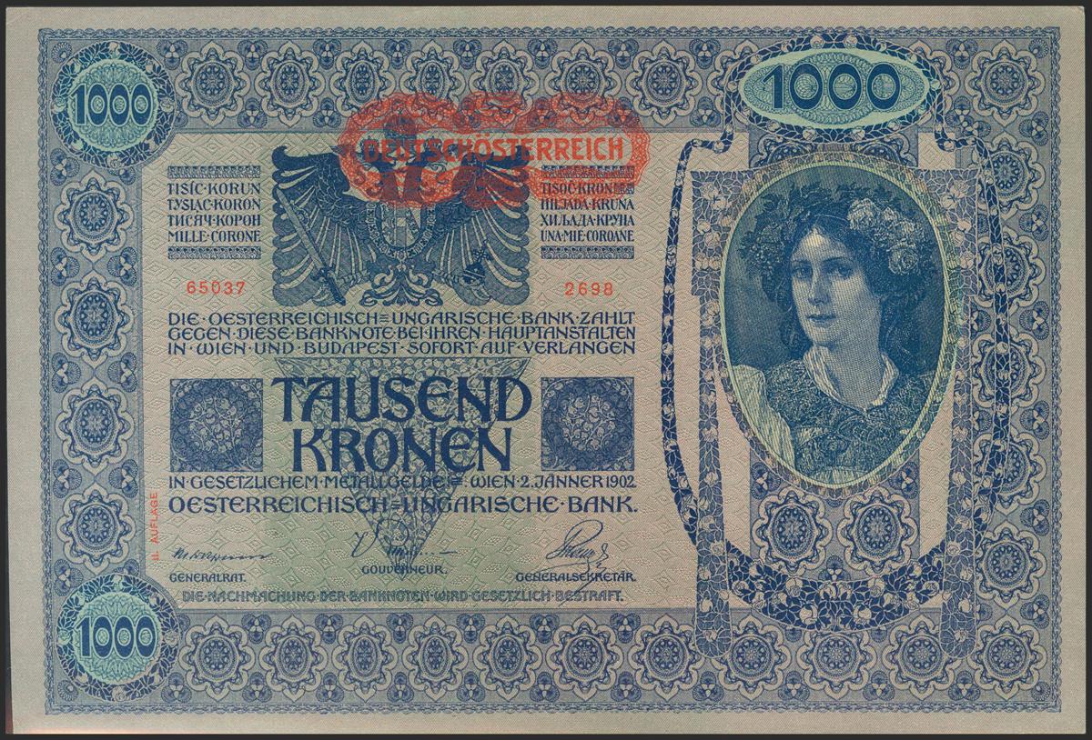 AUSTRIA. 1000 Kronen. 1919. (Pick: 61). About Uncirculated.