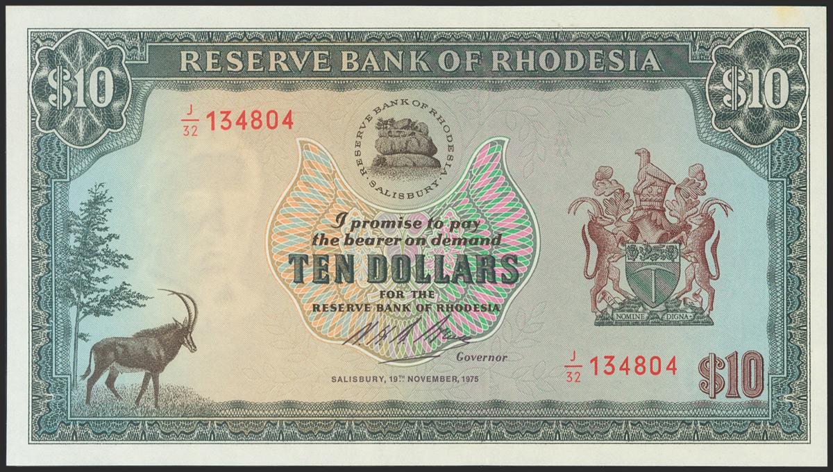 RHODESIA. 10 Dollars. 1975. (Pick: 33g). Uncirculated.