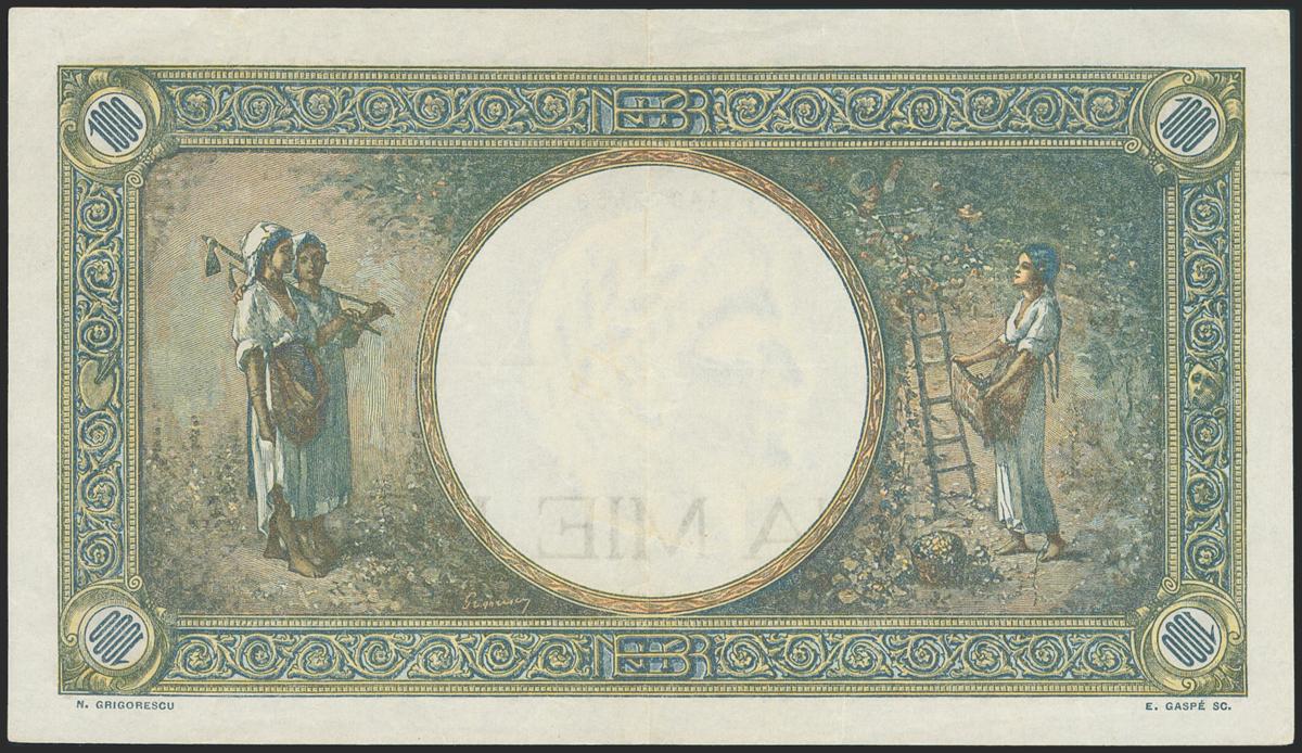 ROMANIA. 1000 Lei. 1941. (Pick: 52a). Small nick on bottom edge. Better than Very Fine.