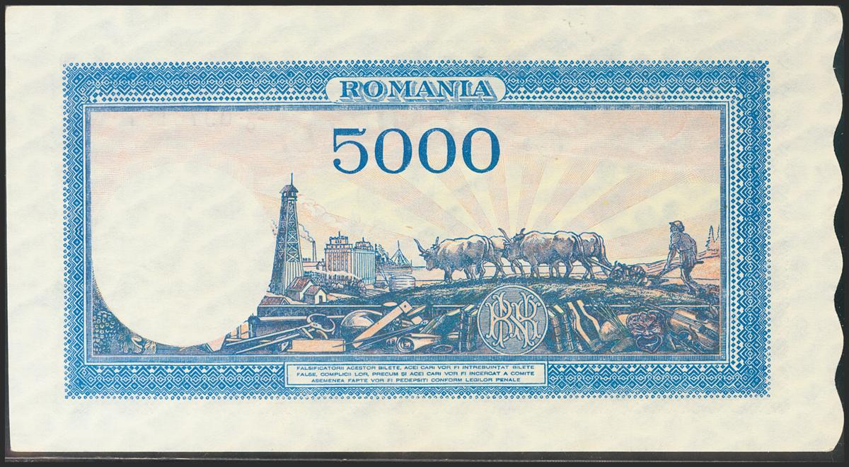 ROMANIA. 5000 Lei. 1945. (Pick: 55a). Uncirculated.