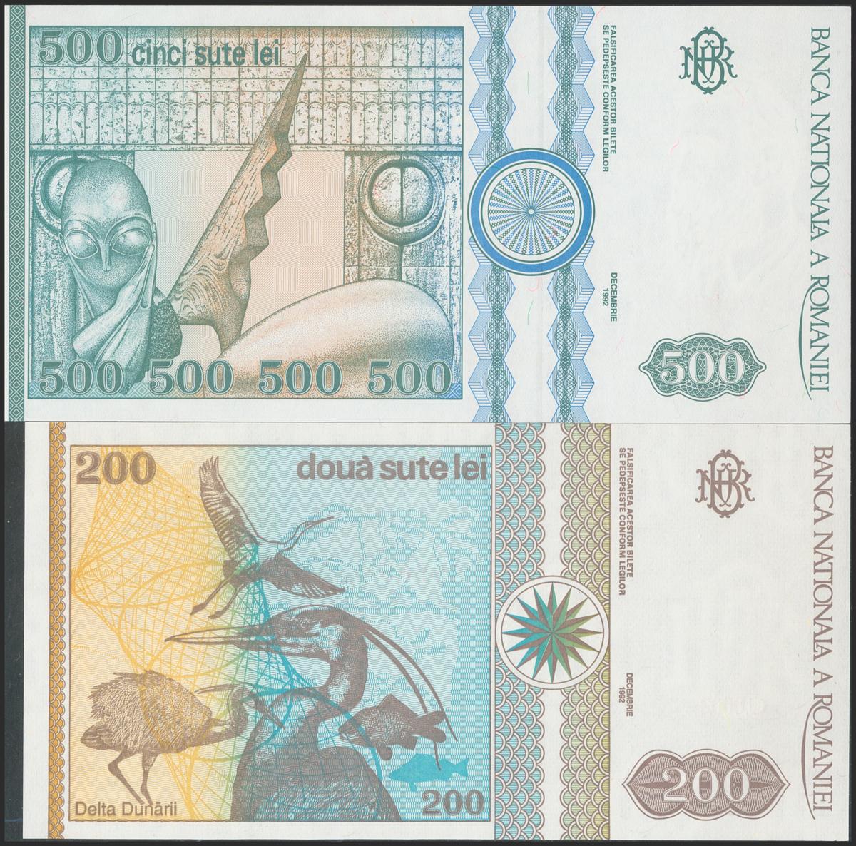 ROMANIA. Set of 2 banknotes of 200 Lei and 500 Lei. 1992. Banca Nationala Romaniei. (Pick: 100a, 101b). Uncirculated.