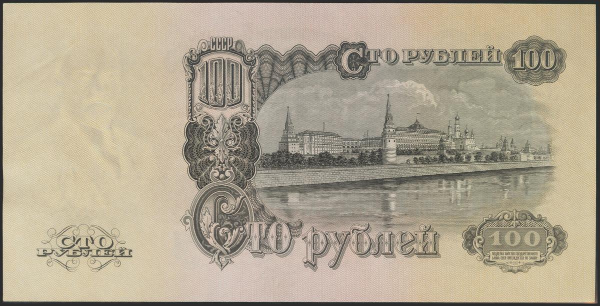 RUSSIA. 100 Rubles. 1947. Wreath around arms with 16 scrolls. (Pick: 231). Very large note. Extremely Fine.