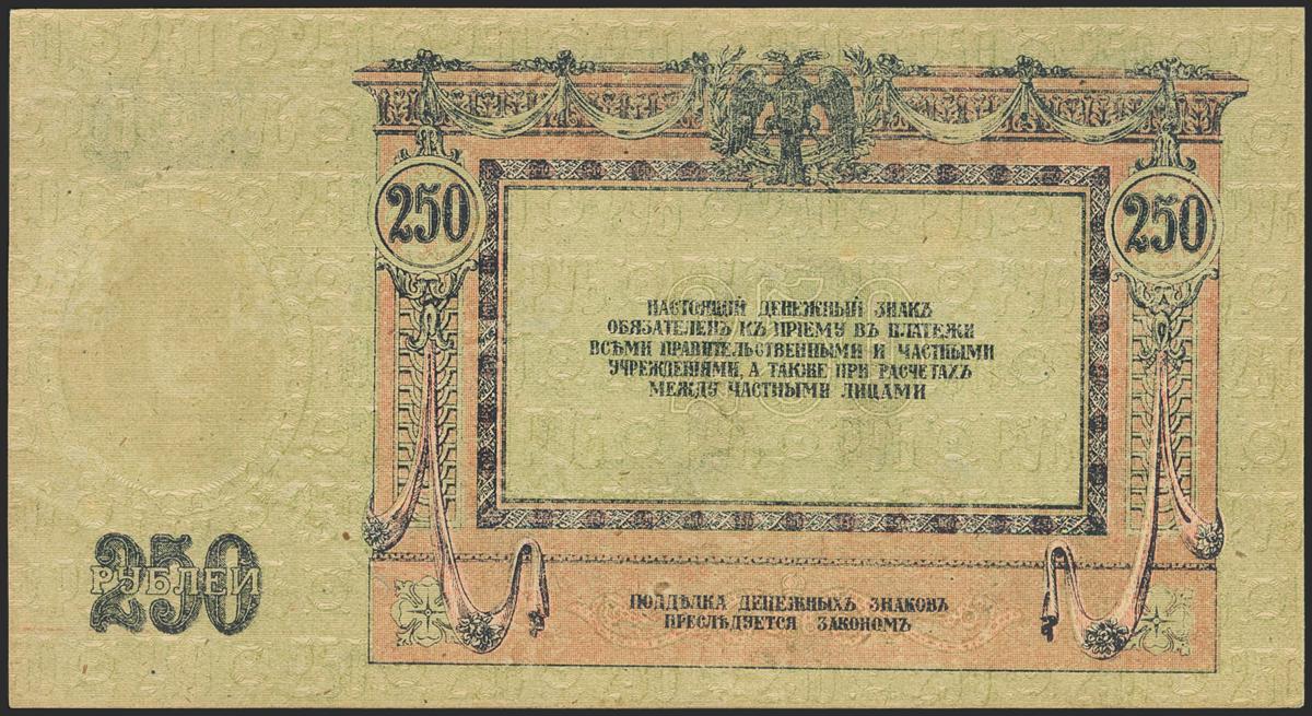 RUSSIA. 250 Rubles. 1918. South Russia. (Pick: S414c). Extremely Fine.