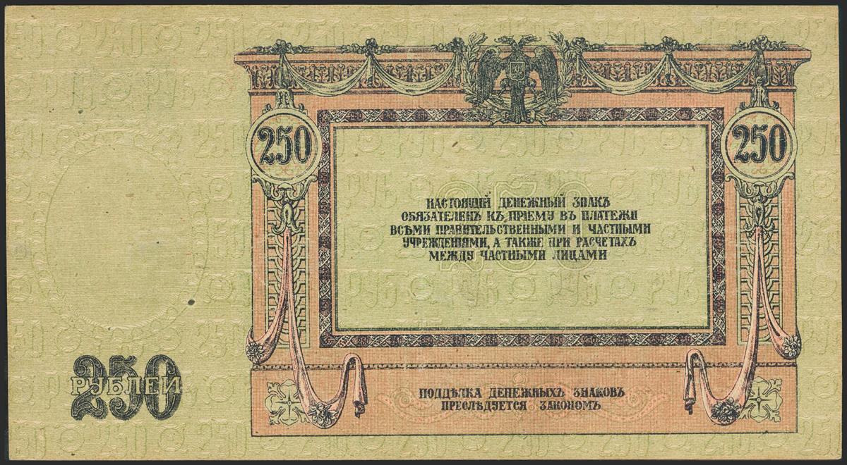 RUSSIA. 250 Rubles. 1918. South Russia. Rostov-on-don. Watermark: monograms. (Pick: S414c). Extremely Fine.