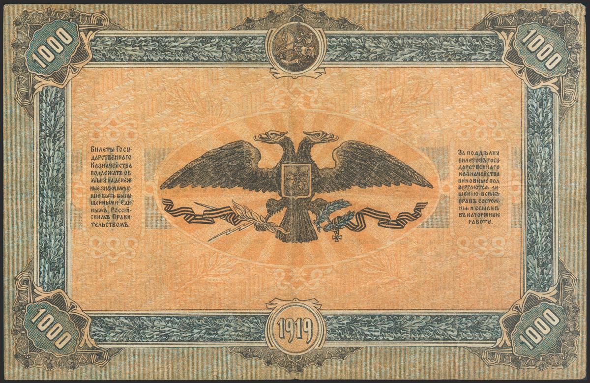 RUSSIA. 1000 Rubles. 1919. South Russia. (Pick: S424b). About Very Fine.