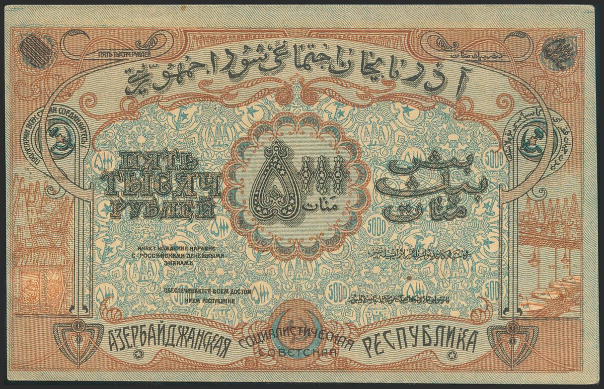 RUSSIA (TRANSCAUCASIA). 5000 Rubles. 1921. Azerbaijan Socialist Soviet Republic. (Pick: S713). Very Fine.