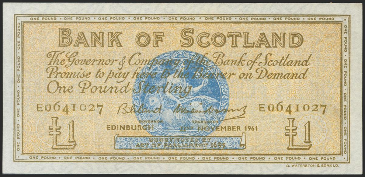 SCOTLAND. 1 Pound. 1961. Bank of Scotland. (Pick: 102a). Uncirculated.