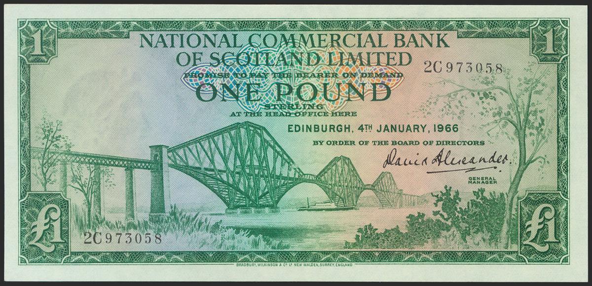 SCOTLAND. 1 Pound. 1966. National Commercial Bank of Scotland Limited. (Pick: 269a). Uncirculated.
