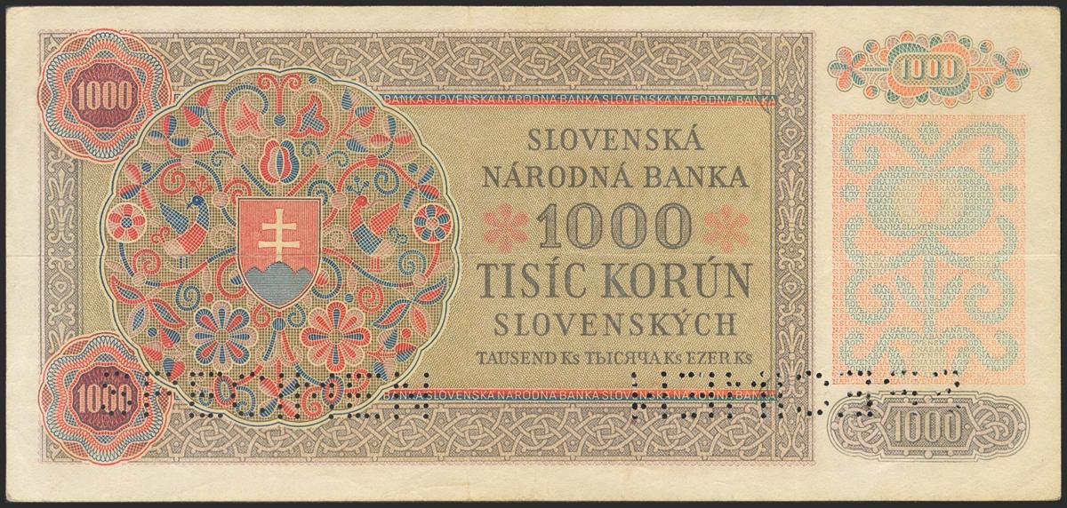 SLOVAKIA. 1000 Korun. 1940. Specimen. (Pick: 13s). Very Fine.