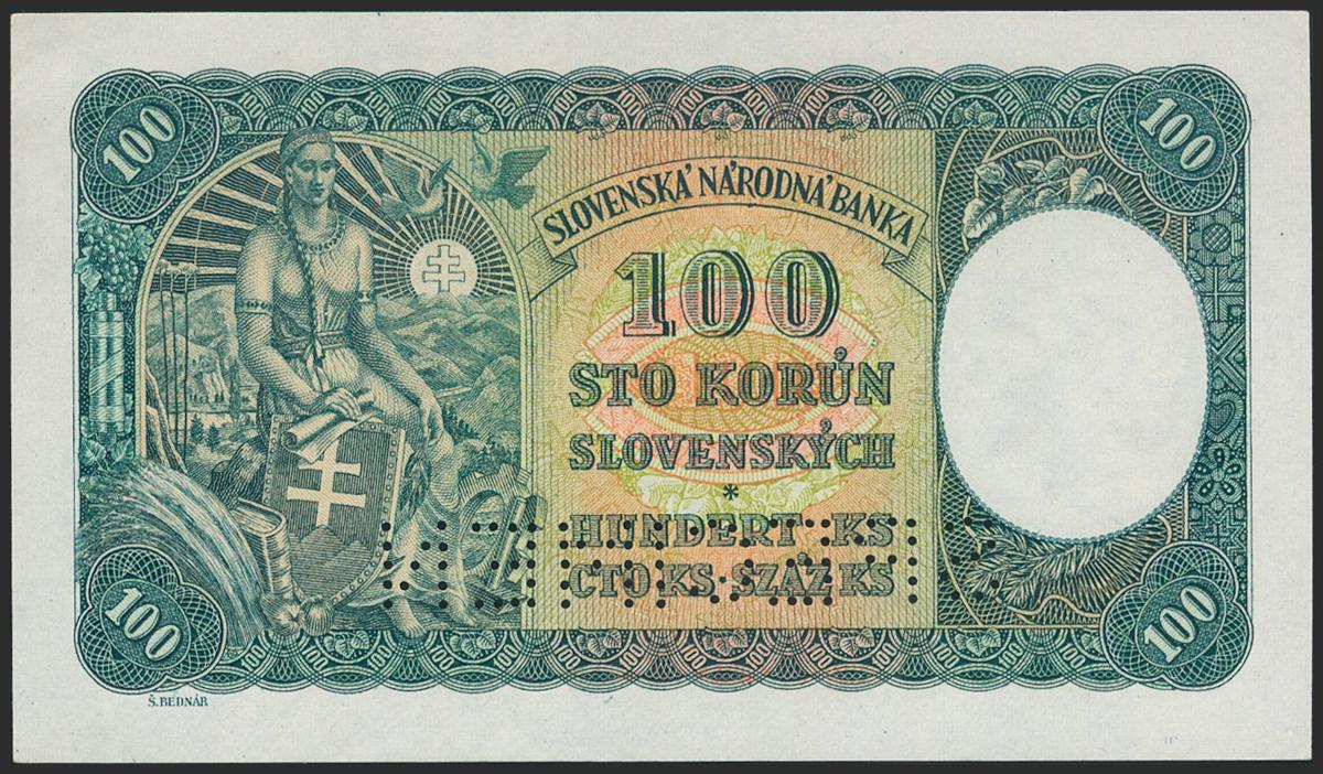 SLOVAKIA. 100 Korun. 1940. Specimen. (Pick: 10s). Uncirculated.