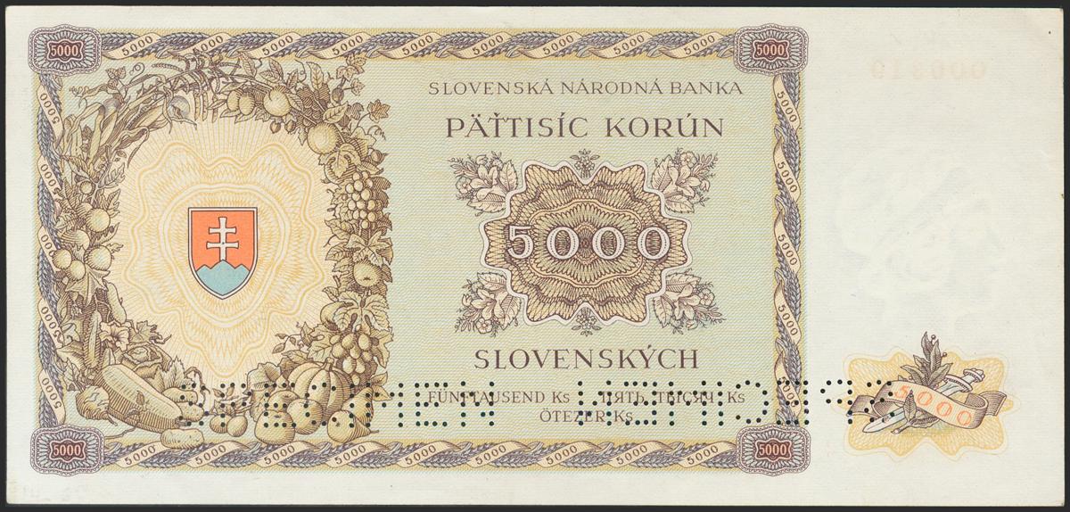 SLOVAKIA. 5000 Korun. 1944. Specimen. (Pick: 14s). Extremely Fine.