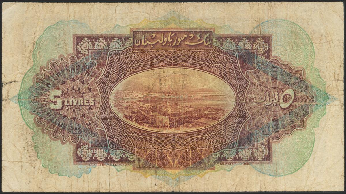 SYRIA. 5 Livres. 1939. (Pick: 41e). Pressed. Rare. Very Good.