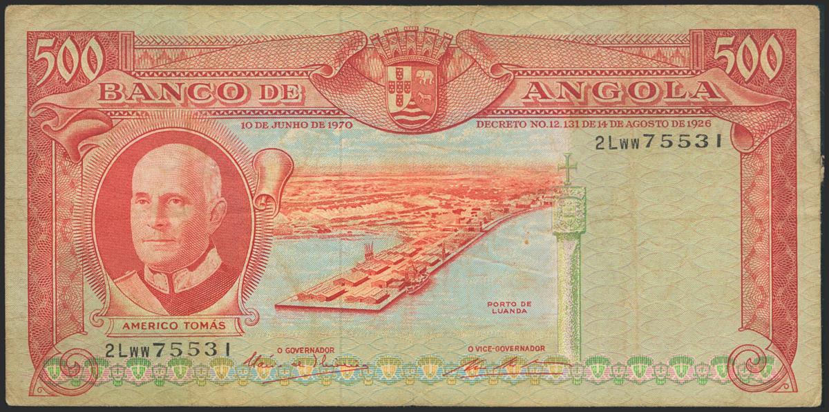 ANGOLA. 500 Escudos. 1970. Banco de Angola. (Pick: 97). Fine.