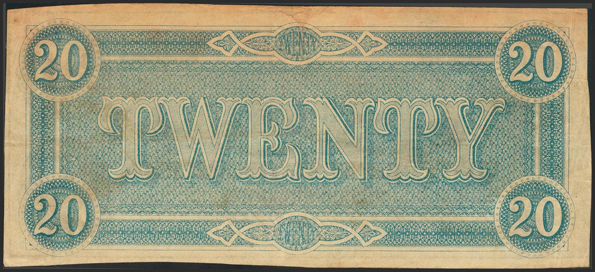 UNITED STATES. CONFEDERATE STATES OF AMERICA. 20 Dollars. 1864. (Pick: 69) (Friedberg: CS-67). Pinholes. Very Fine.