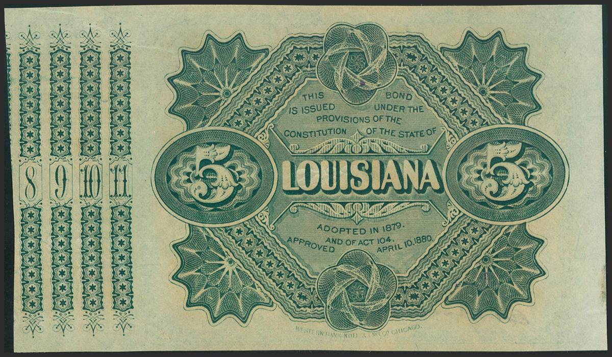 UNITED STATES OF AMERICA. State of Louisiana. 5 Dollars Bond. 1886. "Baby Bond". Uncirculated.