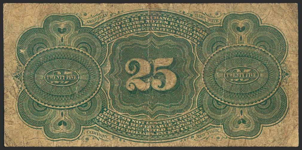 UNITED STATES OF AMERICA. 25 Cents. 1863. Fractional Currency. (Pick: 118b, Friedberg: 1302). Pinhole. About Fine.
