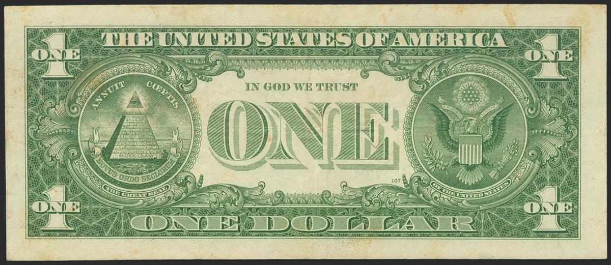 UNITED STATES OF AMERICA. 1 Dollar. 1957. Silver Certificate. Blue seal. Replacement note. (Pick: 419ar, Friedberg: 1619*). Dirty. About Very Fine.