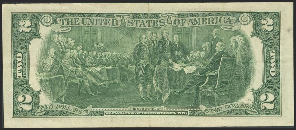 UNITED STATES OF AMERICA. 2 Dollars. 1976. Federal Reserve Note. Richmond. With 6 cents Liberty stamp. (Pick: 461, Friedberg: 1935-E). Very Fine.