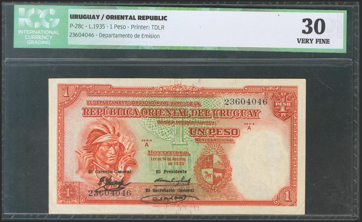 URUGUAY. 1 Peso. 1935. Serie A. (Pick: 28c). ICG30.