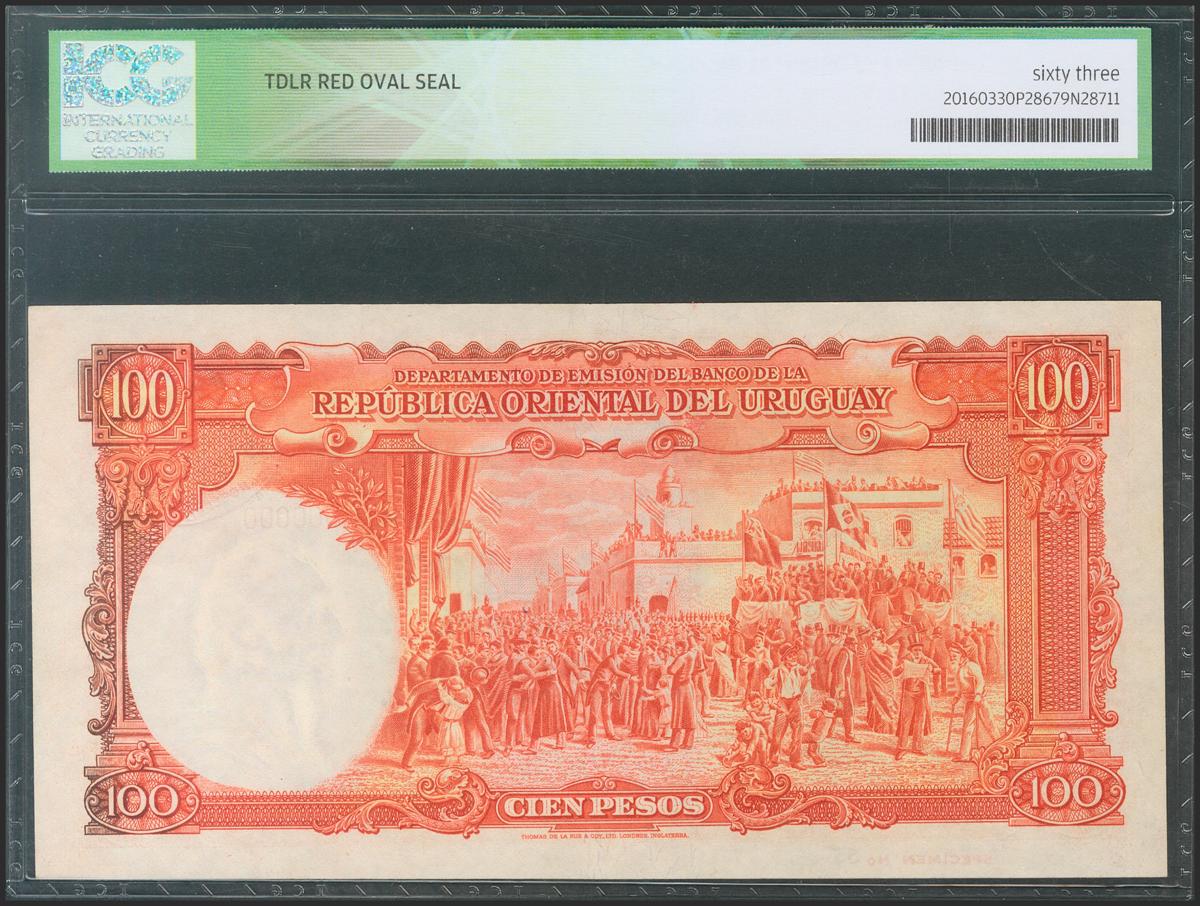 URUGUAY. 100 Pesos. 1935. Serie A. Specimen. (Pick: 31as). ICG63.