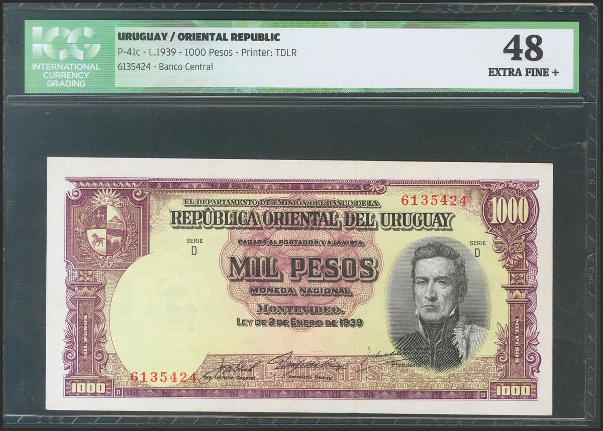 URUGUAY. 1000 Pesos. 1939. Serie D. (Pick: 41c). ICG48.