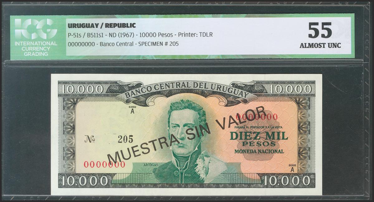 URUGUAY. 10000 Pesos. (1967ca). Specimen. (Pick: 51s). ICG55.