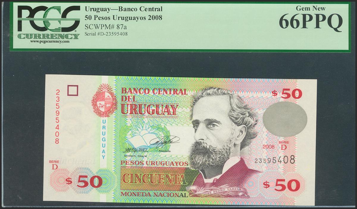URUGUAY. 50 Pesos. 2008. (Pick: 87a). PCGS66PPQ.
