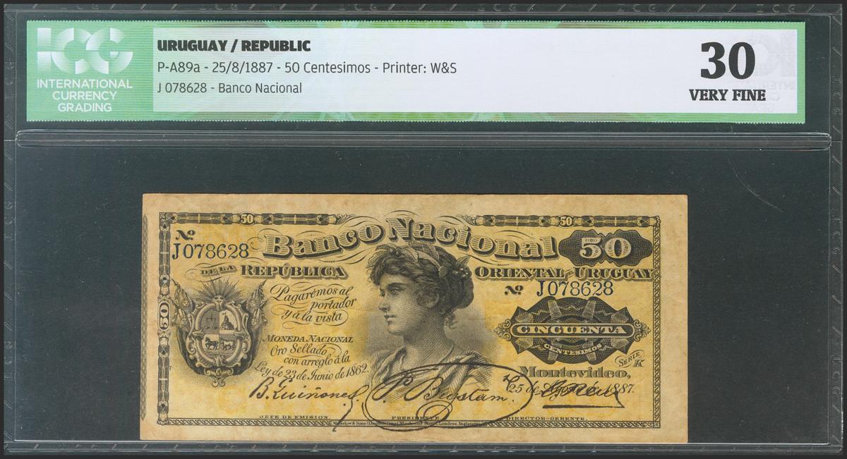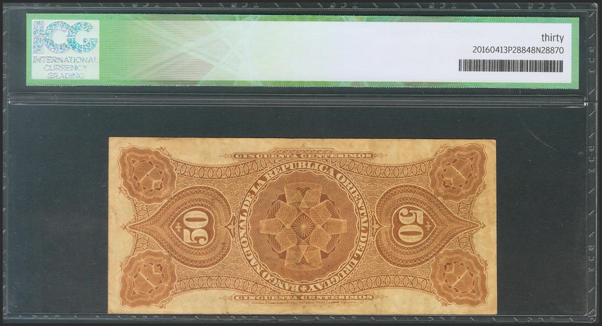 URUGUAY. 50 Centesimos. 25 August 1887. Serie K. (Pick: A89a). ICG30.