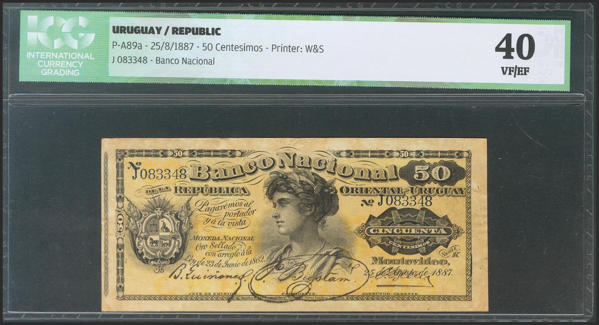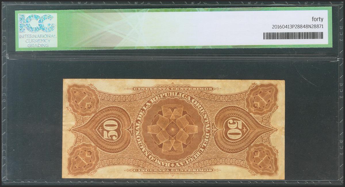 URUGUAY. 50 Centesimos. 25 August 1887. Serie K. (Pick: A89a). ICG40.