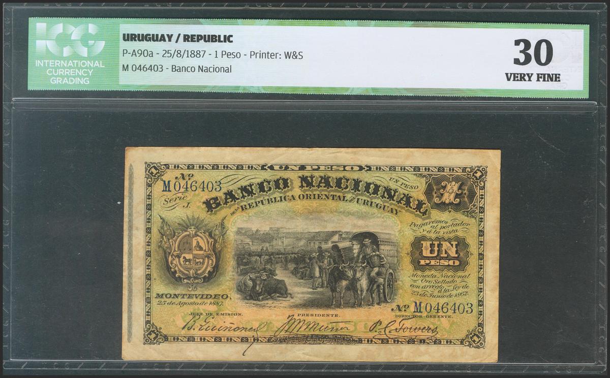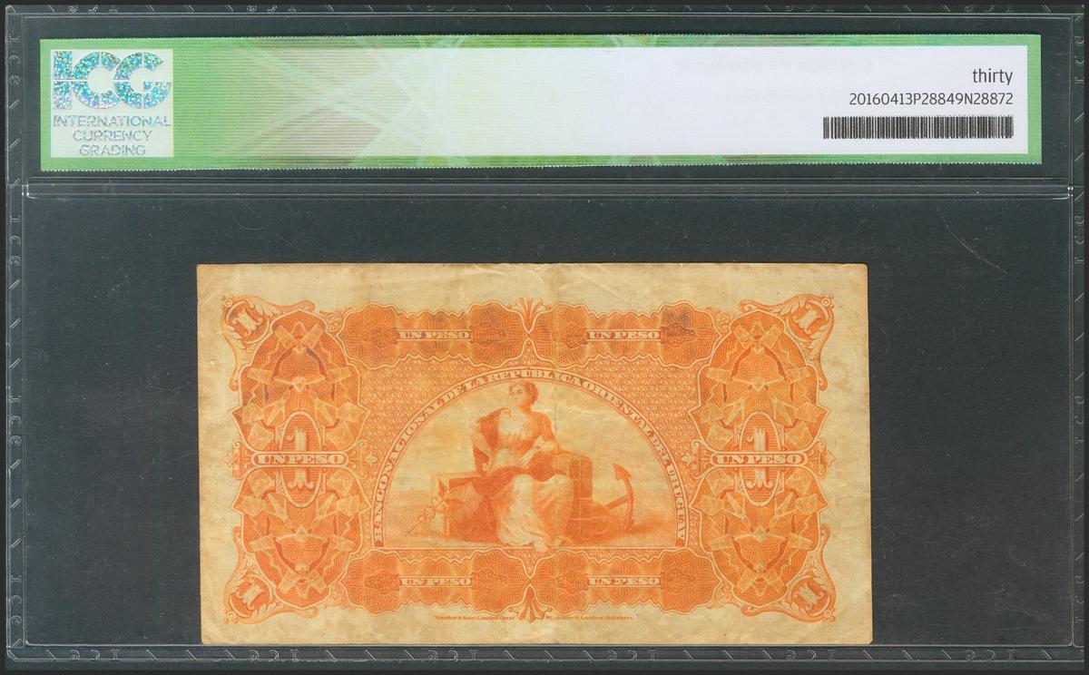 URUGUAY. 1 Peso. 25 August 1887. Serie J. (Pick: A90a). ICG30.