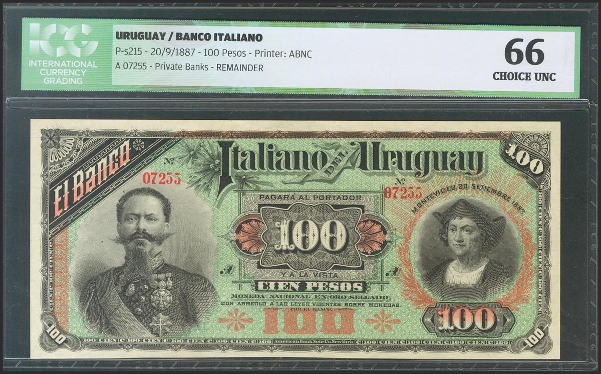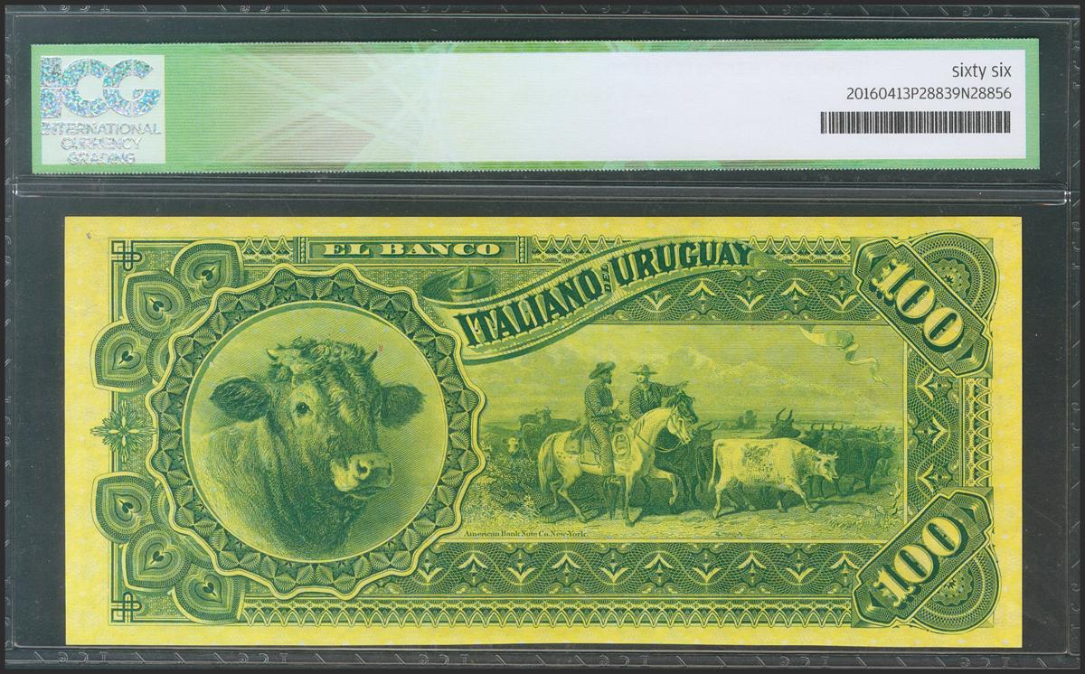 URUGUAY (BANCO ITALIANO). 100 Pesos. 1 September 1887. Serie A. Remainder. (Pick: s215r). ICG66.