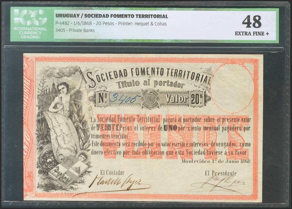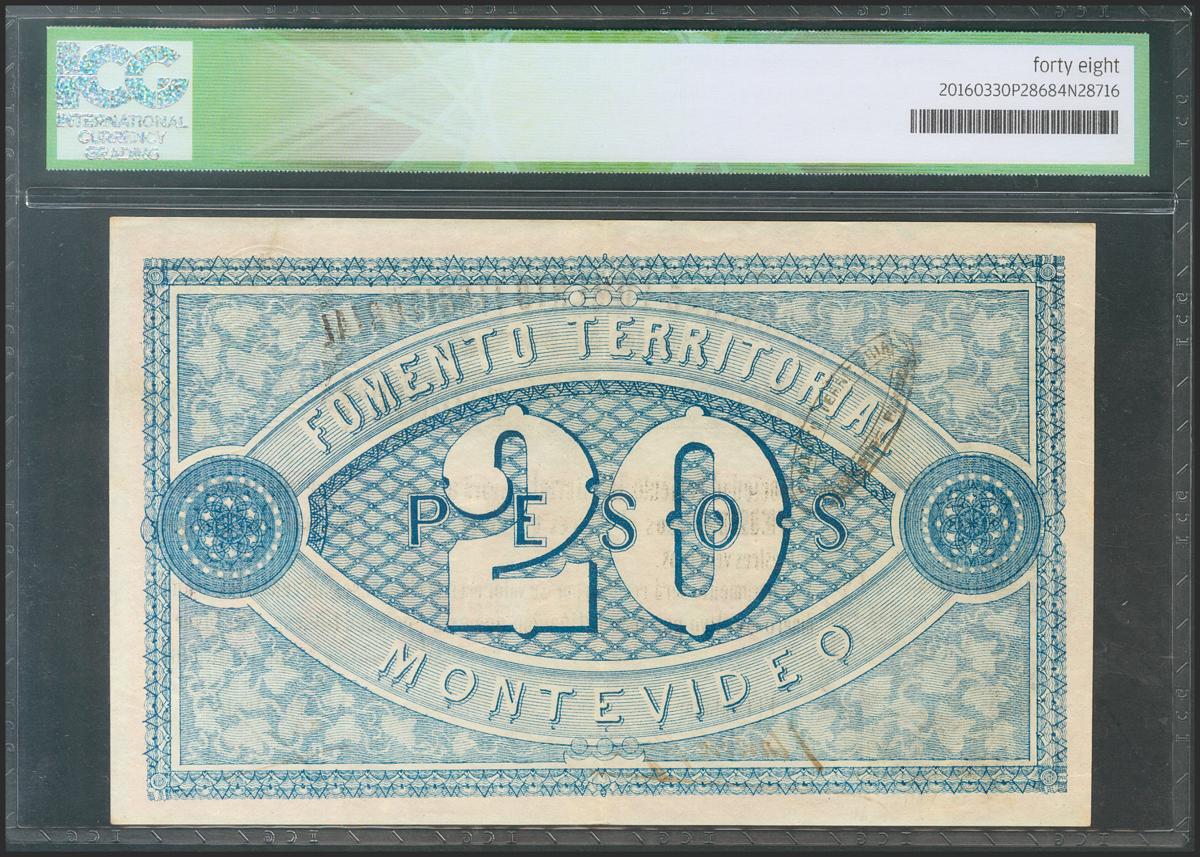 URUGUAY (SOCIEDAD FOMENTO TERRITORIAL). 20 Pesos. 20 June 1868. (Pick: s482). ICG48.