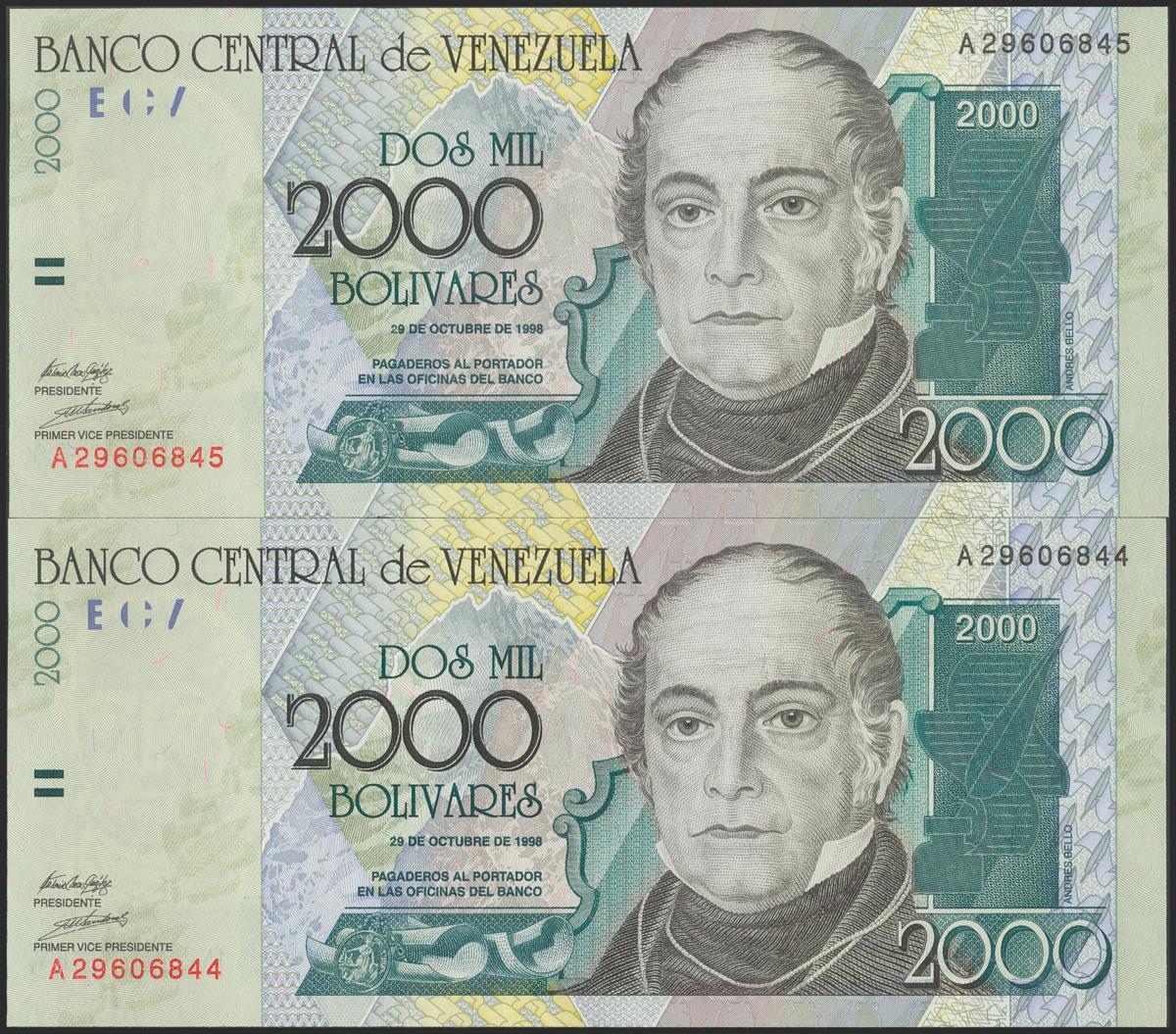 VENEZUELA. 2000 Bolívares. 29 de Octubre de 1998. Pareja correlativa. (Pick: 80). SC.
