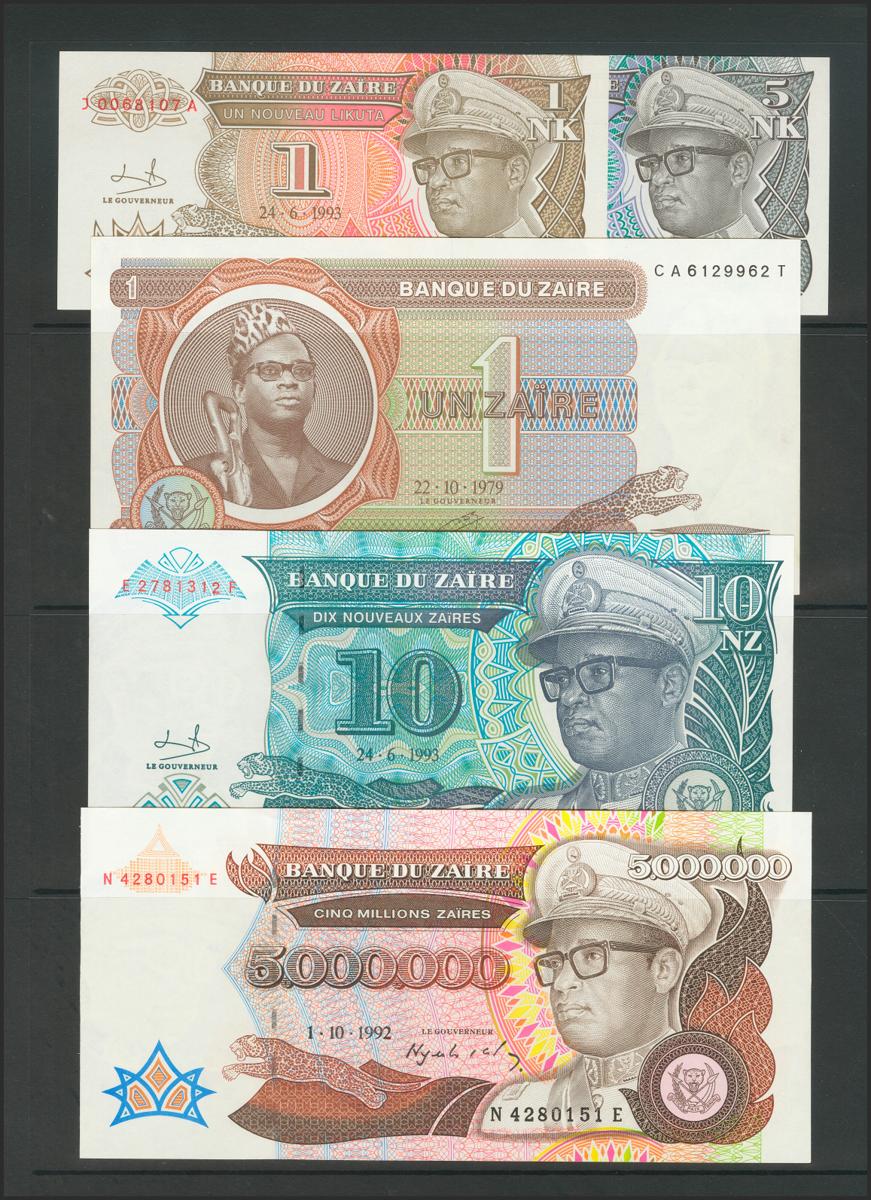 ZAIRE. Set of 5 banknotes from different years and values. About Uncirculated to Uncirculated.