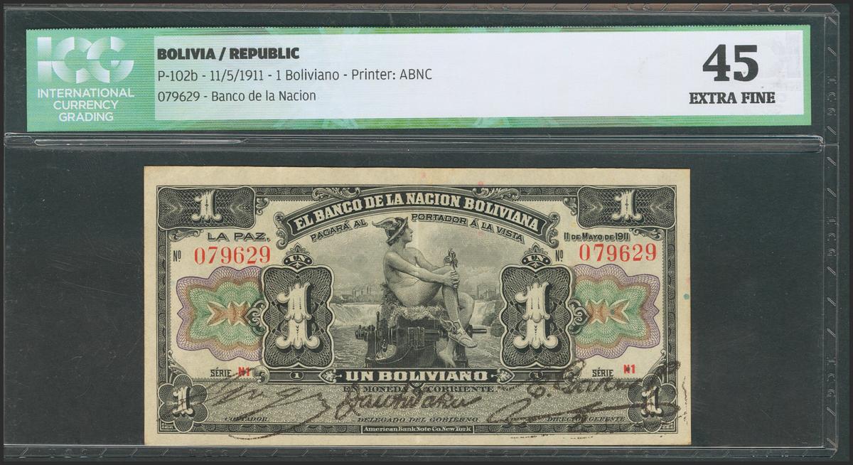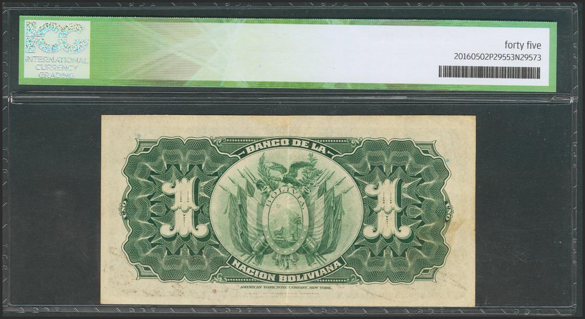BOLIVIA. 1 Boliviano. 11 March 1911. Serie N1. (Pick: 102b). ICG45.