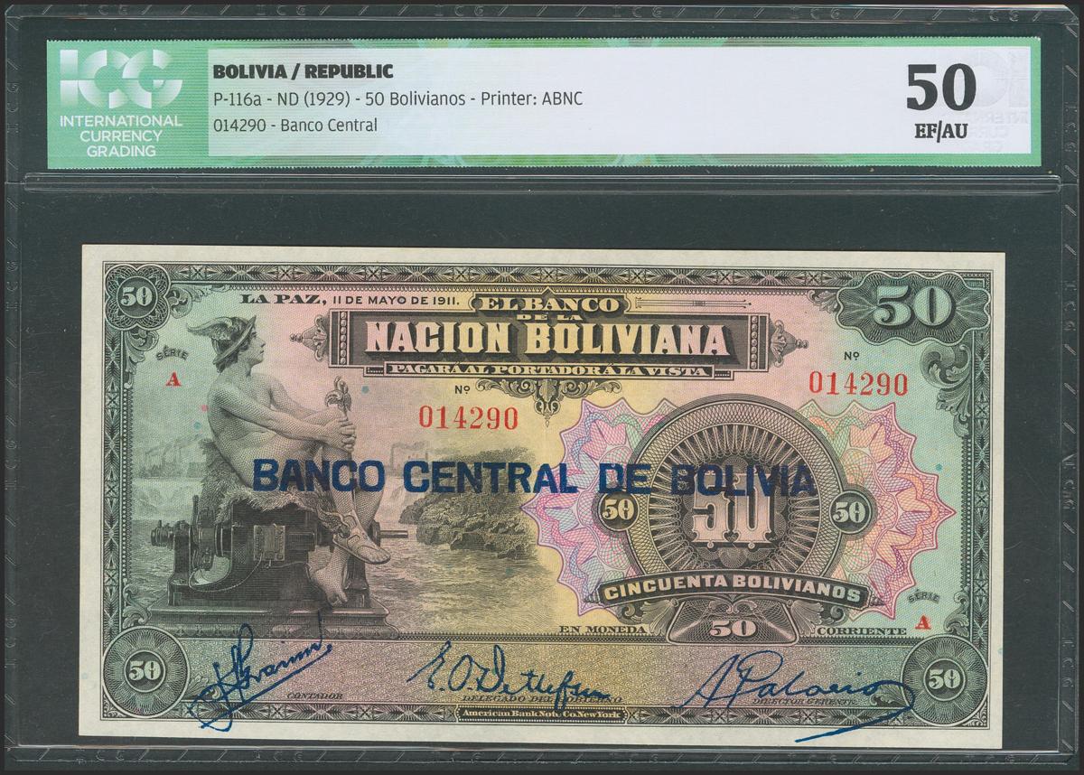 BOLIVIA. 50 Bolivianos. (1929ca). Serie A. (Pick: 116a). ICG50.