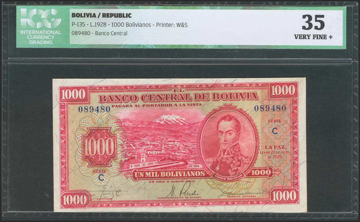 BOLIVIA. 1000 Bolivianos. 1928. Serie C. (Pick: 135). ICG35.